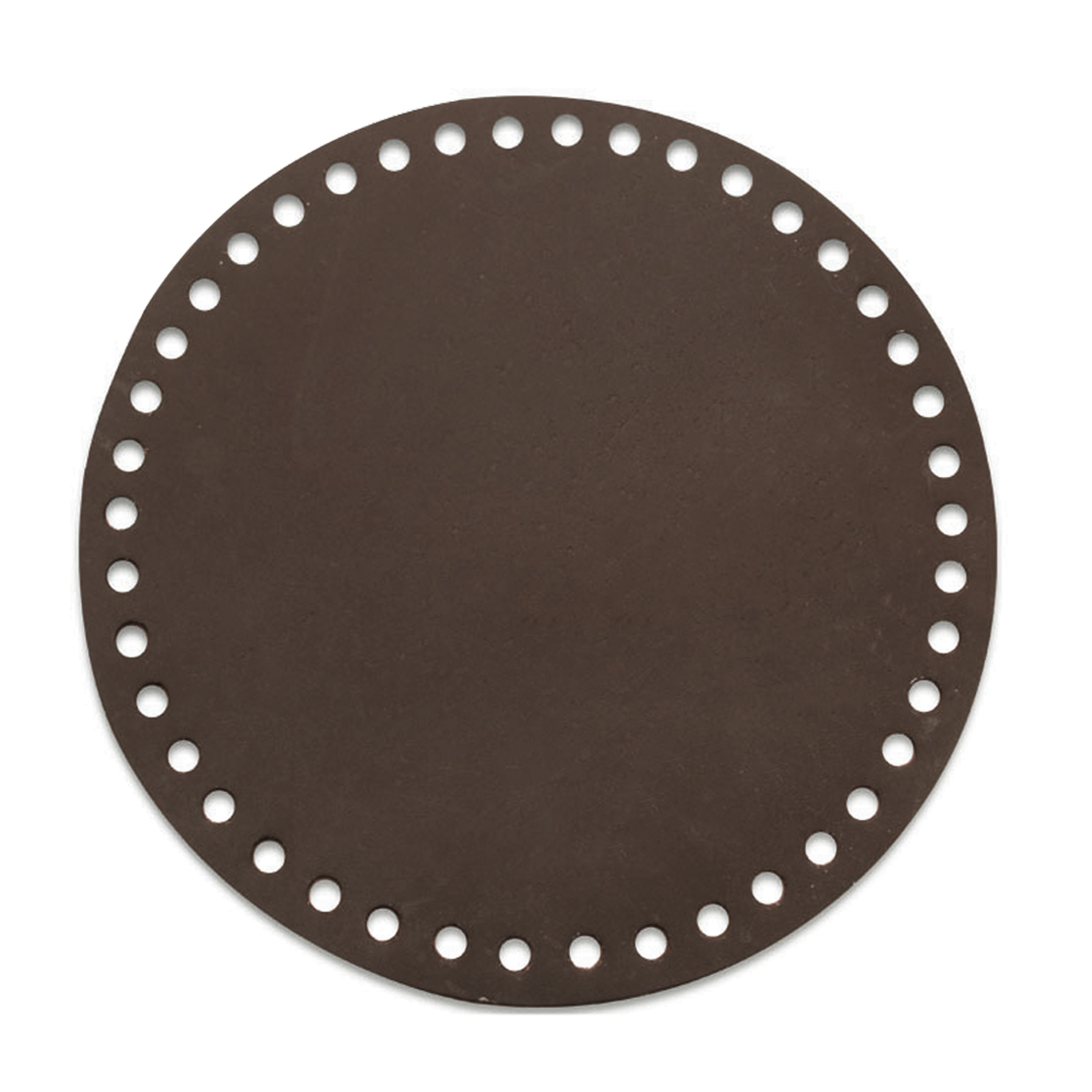 Fundo de Bolsa em Couro para Crochê Redonda Cia do Fio 20cm FL Café FL
