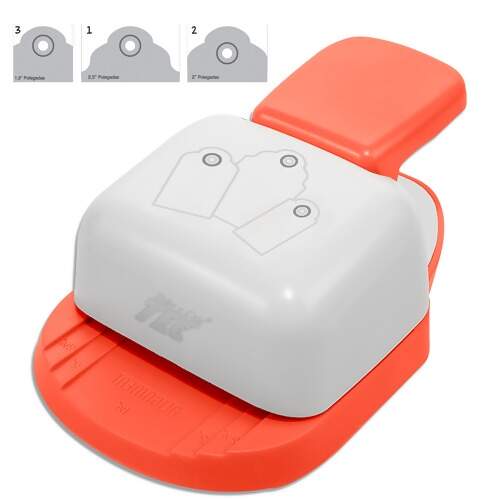 Furador ideal para criar tags em 3 larguras diferentes e comprimento ilimitado. Esta ferramenta decora o topo das tags. Fura e embossa o centro para passar cordões garantindo um ótimo acabamento.