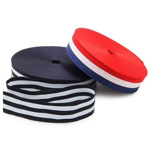 Galão de gorgurão listrado. Muito usado em camisetas, bolsas, sapatos, laços, e muito mais.