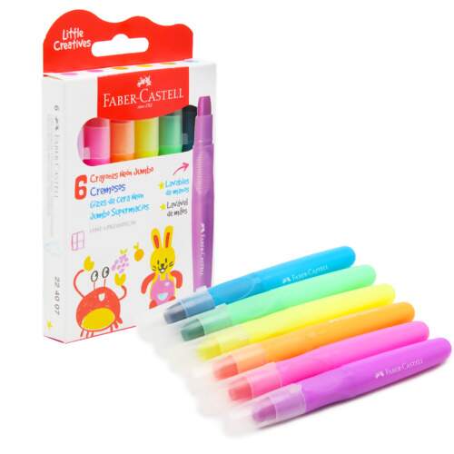 Descrição Giz de Cera Jumbo Supermacio Little Creatives Neon Faber-Castell 6 Cores
