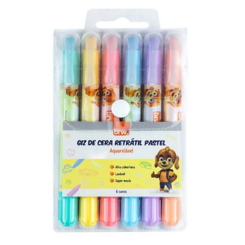 Giz de Cera Retrátil Pastel BRW GZ0006 com 06 Und
