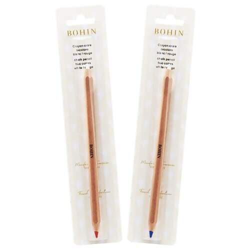 O lápis de giz bicolor BOHIN é um acessório de marcação essencial. O seu fácil manuseamento permite-lhe traçar com precisão todos os seus tecidos. Basta adaptar a espessura da sua linha afiando a mina com um apontador de lápis clássico. Estes lápis de giz, mais resistentes que o giz de alfaiate tradicional, podem ser facilmente guardados num kit de costura. Mude rapidamente de uma cor de marcação para outra graças às suas duas cores que lhe darão mais flexibilidade no seu trabalho de marcação.