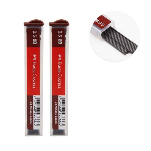 Descrição Grafite Fino Faber-Castell 0.5mm 2B SM/TMG052B com 2 Tubos