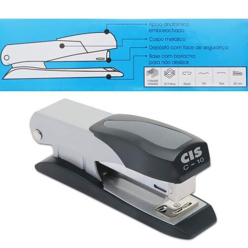 Descrição Grampeador Metallic Cis C-10 Cinza para 25 Folhas