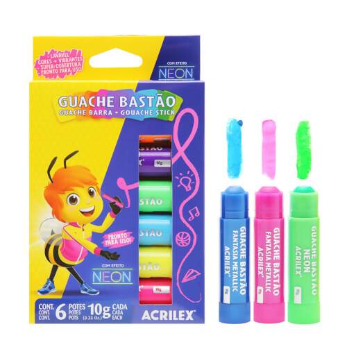 Detalhe2 Guache Bastão Acrilex com 06 Und