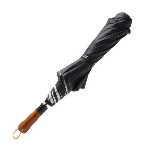 Detalhe Guarda Chuva Cabo de Madeira 8 Varetas Preto-Prata MZ-920