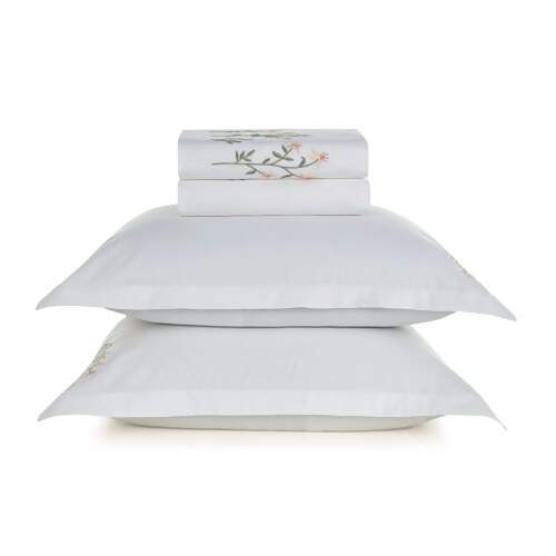 O Jogo de Cama Briana King combina sofisticação e bem-estar. Produzido em percal 200 fios 100% algodão, possui tecido encorpado, toque macio, excelente ventilação e propriedades antipilling e hipoalergênicas — ideal para noites de sono mais confortáveis. O conjunto inclui sobre lençol de 2,90m x 2,50m com dobra feita e bordado na vira, lençol com elástico de 1,93m x 2,03m x 40cm e fronhas de 50cm x 70cm. Em tom branco elegante e com bordados florais delicados, leva charme e delicadeza à decoração do quarto.