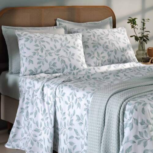- Jogo com 4 peças sendo um lençol superior, um lençol com elástico e duas fronhas, indicado para camas tamanho casal king.
