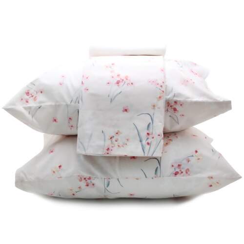 - Jogo com 4 peças sendo um lençol superior, um lençol com elástico e duas fronhas, indicado para camas tamanho casal.