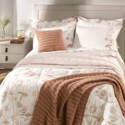 Transforme seu quarto com a sofisticação e o aconchego do Jogo de Cama Queen Mariê . Produzido em 100% algodão 200 fios, proporciona um toque suave e encorpado, além de ser respirável, hipoalergênico e resistente ao pilling, garante maior durabilidade e cuidado com a pele. O conjunto inclui um lençol tinto com vira dimensionada e bainha de 10cm (2,40m x 2,50m), um lençol com elástico estampado (1,58m x 1,98m x 40cm) e duas fronhas (50cm x 70cm) com abas elegantes de 7cm . Com uma estampa floral em tons de rosa e bege , esse jogo de cama adiciona charme e requinte à decoração.