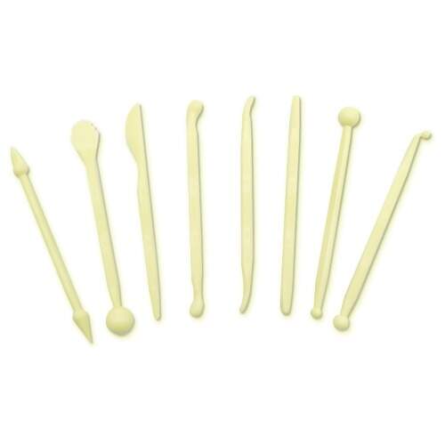 Ferramentas para modelar, usadas para fazer: olhinhos, mãozinhas, cortar pequenos detalhes, afinar e drapear a massa formando babados e etc.