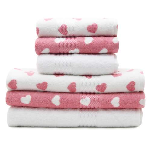 Jogo de Toalhas 6 Peças Banho Rosto Prisma Dohler Coração Rosa