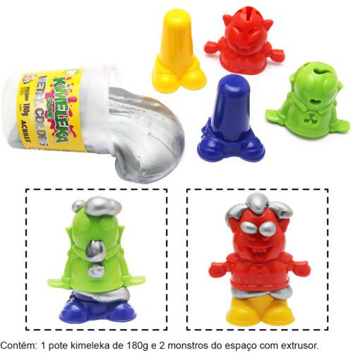 Contém: 1 pote kimeleka de 180g e 2 monstros do espaço com extrusor.