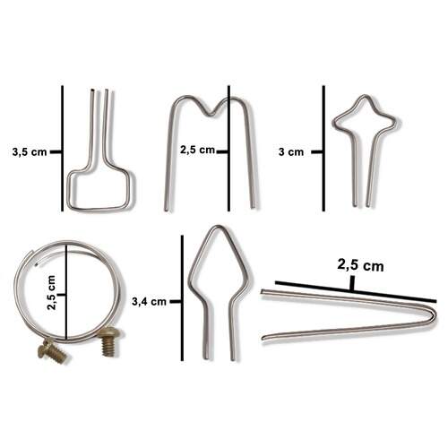 Conjunto de pontas com 5 pontas diferentes, 1 rolinho de fio Níquel Cromo 20 e 2 parafusos para pirógrafos para todos os modelos, exceto modelo EM-1