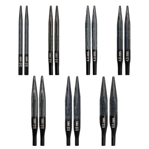 Este conjunto de pontas de agulha de madeira índigo de comprimento mais curto é ideal para projetos de circunferência menores, como chapéus, mangas e itens de bebê.