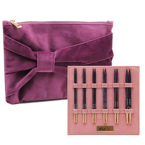 Trabalhada em um belo tom de madeira no tom de lilás, este conjunto de agulhas cúbicas é tão benéfico quanto bonito. A forma ergonômica foi projetada para ser confortável na mão, possibilitando horas de trabalho sem machucar na hora de fazer seus trabalhos, o conector do cabo vem em dourado fosco dando um charme extra as agulhas. Acompanha uma bolsa de veludo luxuosamente macia que protegerá as agulhas e as manterá bem armazenadas junto com uma variedade de acessórios úteis.