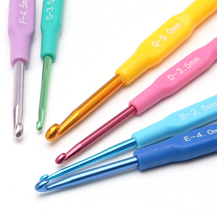 Kit Agulha de Crochê Alumínio Colorida Cabo Plástico com 12 Und