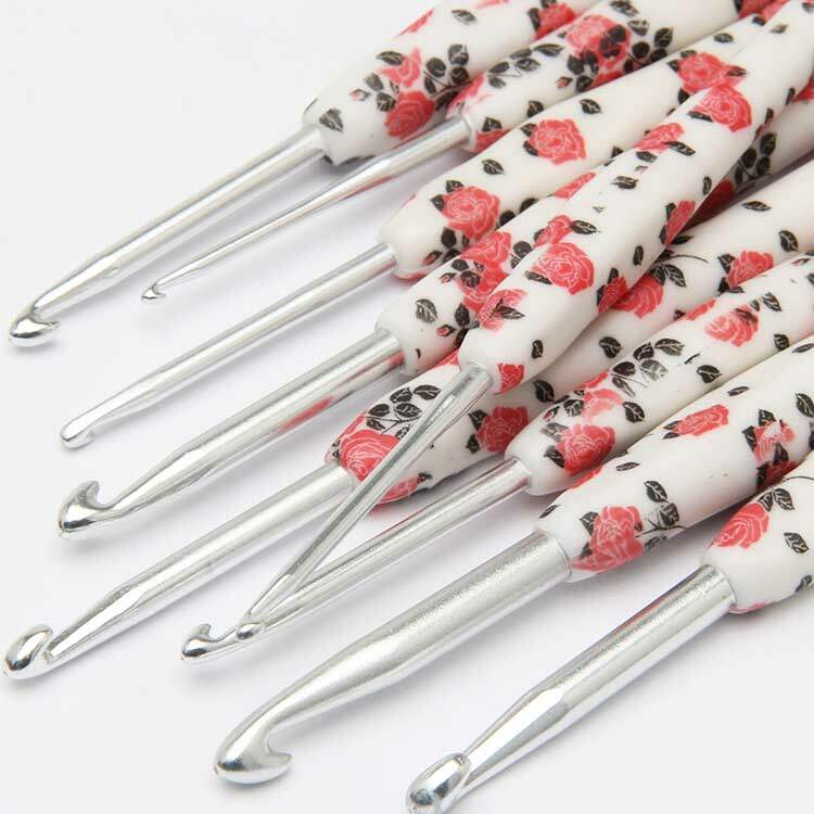 Kit Agulha de Crochê Cabo Emborrachado Flores
