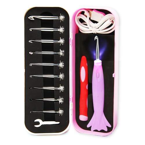 Kit Agulha de Crochê com USB Lilás com 12 Pontas