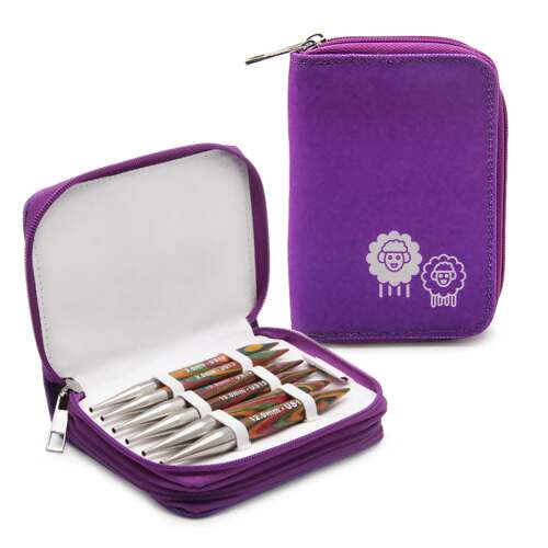 O conjunto de pontas de agulha circulares intercambiáveis Symfonie é perfeito para muitos knitters que gostam de tricotar malhas grandes, como suéteres e cobertores grandes da moda. Possui 3 agulhas grossas de tamanho grande, além de 3 cabos giratórios de aço inoxidável revestidos de nylon preto e todos os acessórios necessários. A madeira de bétula laminada foi projetada para ser uma das superfícies de madeira mais resistentes, com alta densidade, que pode suportar facilmente os pesados pesos dos fios. O espaçoso estojo roxo com zíper com a amada ovelha na frente carrega as agulhas e acessórios em bolsos de armazenamento etiquetados.