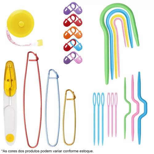 É um conjunto completo que inclui agulhas de crochê, fios e diversos ...veja mais