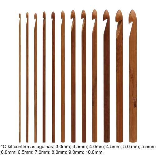 Descrição Kit Agulhas de Crochê Bambu 15cm com 12 Und