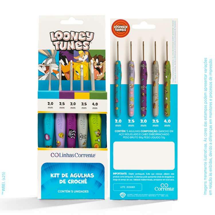 Kit Agulhas de Crochê Corrente Cabo Emborrachado Looney Tunes