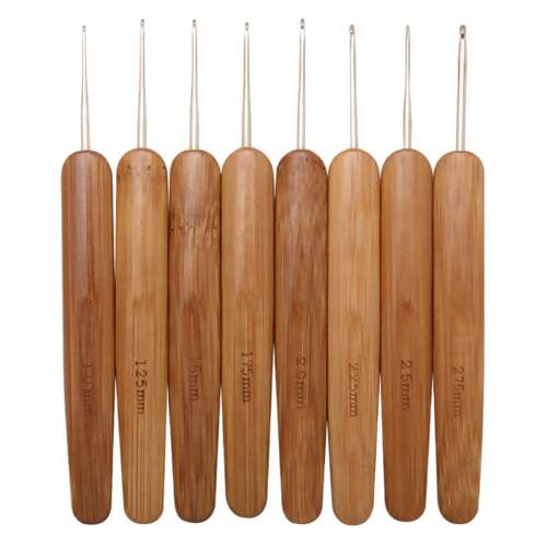 - 8 agulhas de crochê de Alumínio cabo de bambu - Tamanhos (1.0 / 1.25 / 1.5 / 1.75 / 2.0 / 2.25 / 2.25 / e 2.75mm )