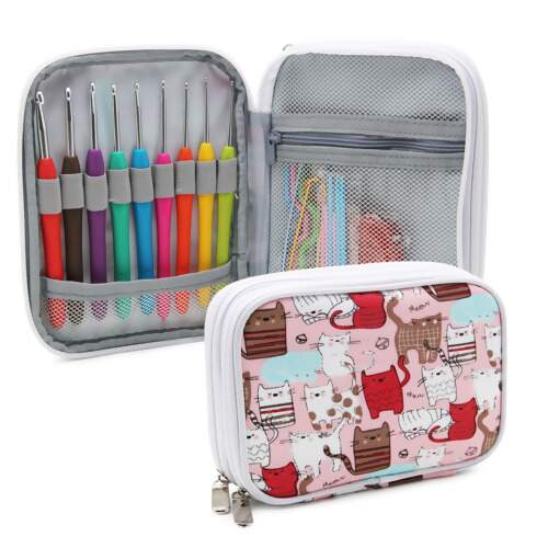 Youtube Kit Agulhas de Crochê e Acessórios Estojo Gatos 2 45 Und