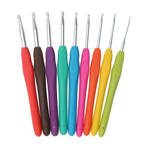 - 09 agulhas de crochê colorida cabo emborrachado - Tamanhos ( 2.0mm, 2.5mm, 3.0mm, 3.5mm, 4.0mm, 4.5mm, 5.0mm, 5.5mm , 6.0mm )