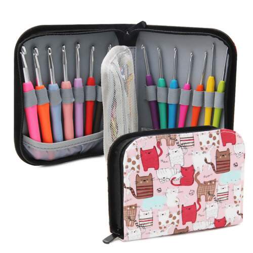 Youtube Kit Agulhas de Crochê e Acessórios Estojo Gatos 3 com 49 Und