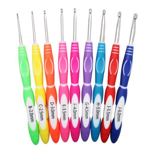 - 9 agulhas de crochê em alumínio com cabo emborrachado - Tamanhos (2.0 / 2.5 / 3.0 / 3.5 / 4.0 / 4.5 / 5.0 / 5.5 e 6.0mm)