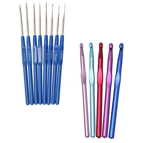 - 8 agulhas de crochê em alumínio com cabo de plástico - Tamanhos (0.6 / 0.75 / 0.90 / 1.10 / 1.20 / 1.50 / 1.60 e 1.75mm)