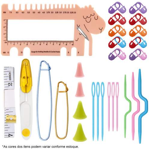 Descrição Kit Agulhas de Crochê e Acessórios Lírios 2 com 61 Und FL