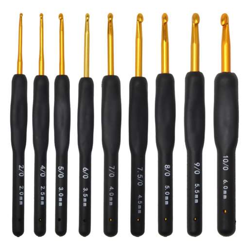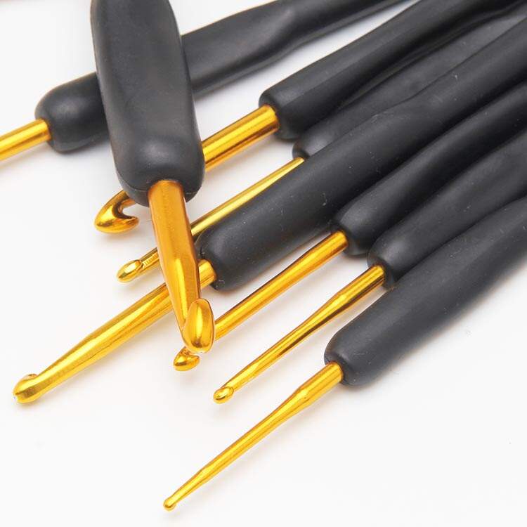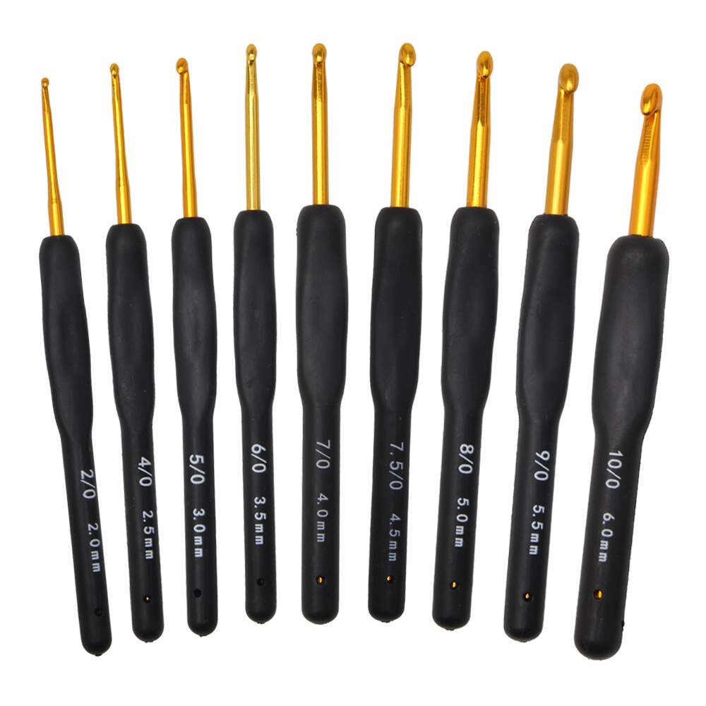 Kit Agulhas de Crochê Preto e Dourado Cabo Emborrachado 09 Und
