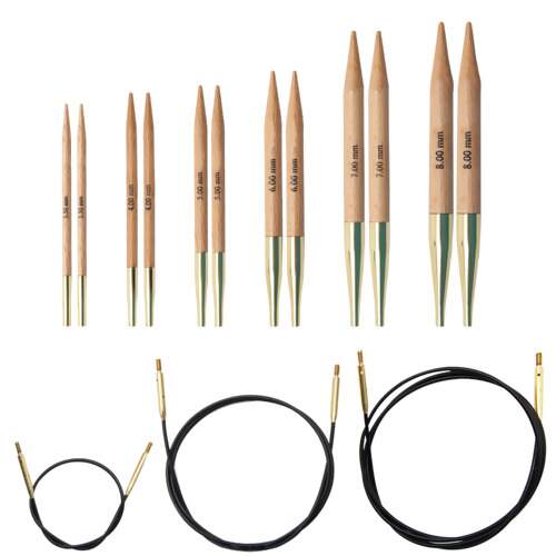 O conjunto ideal de agulhas intercambiáveis para quem deseja a resistência da madeira. A superfície polida funciona com todos os tipos de fios e a sensação sólida dessas agulhas é satisfatória para todos os tricoteiros, novos a experientes. São também o conjunto perfeito para quem ensina a tricotar em intercambiáveis.