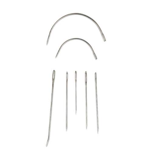 Este conjunto completo inclui agulhas curvas, perfeitas para alcançar áreas difíceis; agulha cabeça de naja, ideal para materiais mais espessos e resistentes; agulhas de costura versáteis, indicadas para o dia a dia; e agulha de tapeçaria, essencial para arremates e detalhes precisos.