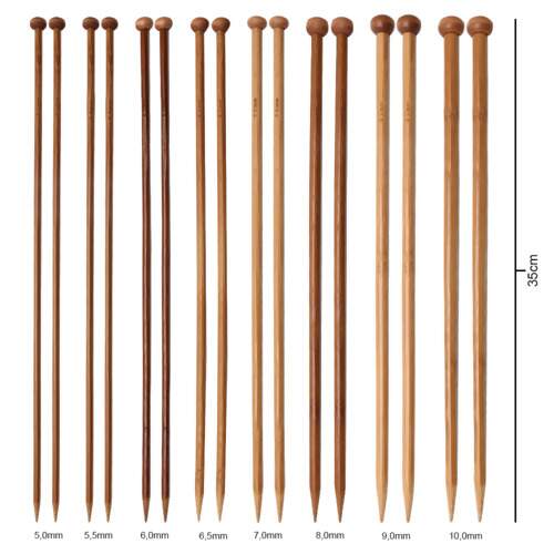 Kit Agulhas para Tricô Bambu 35cm com 18 Pares