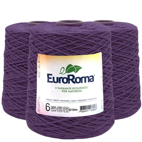 Kit Barbante EuroRoma Colorido N.6 600g com 03 Und 0610- Roxo