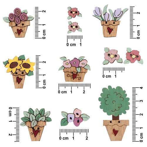 Detalhe Kit Botão Patchwork Cantinho da Arte 7778 Vasos e Flores 14 Und FL