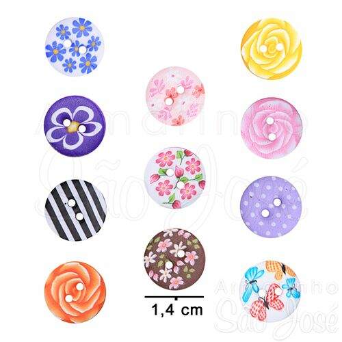 Botões artesanais em cerâmica plástica, indicado para confecção e trabalhos decorativos, como scrapbooking.