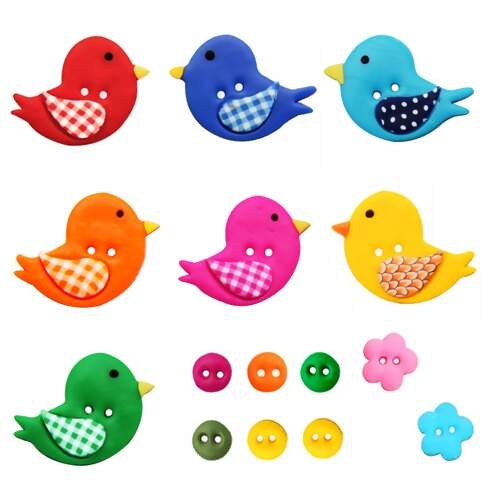 Descrição Kit Botão Patchwork Veceli B-054 Passarinho Escuro