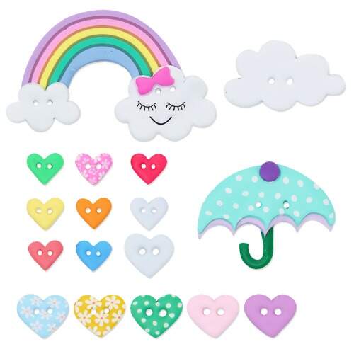 Kit Botão Patchwork Veceli Especial B- Nuvem-Coração e Arco-Íris