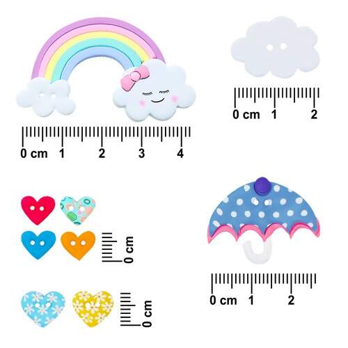 Descrição Kit Botão Patchwork Veceli Especial B Nuvem-Coração e Arco-Íris