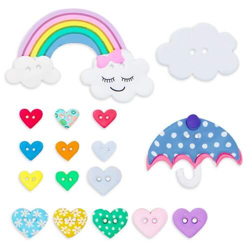 Kit Botão Patchwork Veceli Especial B Nuvem-Coração e Arco-Íris