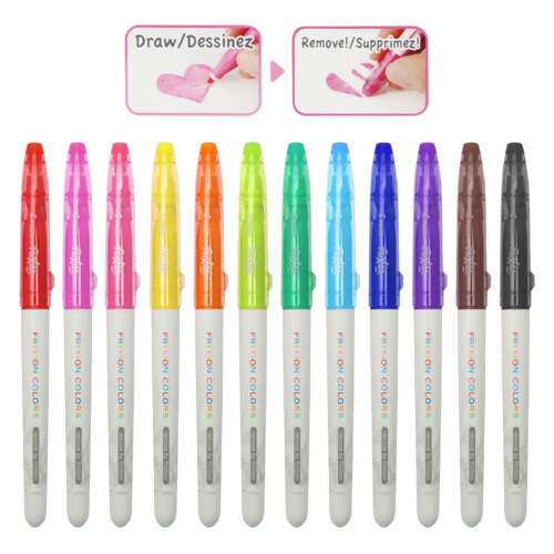 As canetinhas Frixion Colors são hidrográficas da PILOT que podem ser apagadas. Com 12 opções de cores vibrantes, tinta à base de água e toda a tecnologia da renomada linha Frixion, essas canetinhas são perfeitas para dar vida às suas criações. Desenvolvida no Japão e sensível à temperatura. Basta esfregar a borrachinha da própria tampa da canetinha para fazer a tinta desaparecer do papel sem deixar manchas.