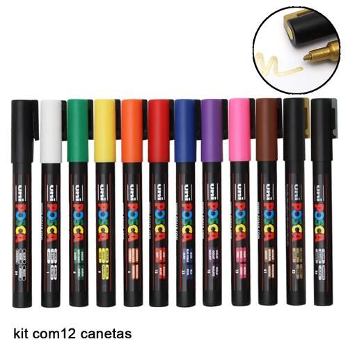 Youtube Kit Caneta Posca Uni-ball PC-3m com 12 Cores