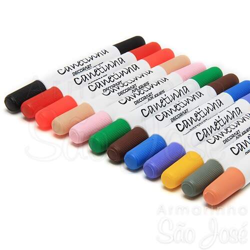 As Canetinhas possuem dupla ponta, sendo uma fina e a outra grossa. As cerdas das pontas são inteligentes porque dispensam a tinta na medida certa, fazendo com que os riscos fiquem bem definidos. As Canetinhas dupla ponta estão disponíveis em 12 cores sortidas. São ideal para tecidos, telas, madeiras, MDFs, biscuits e papéis.
