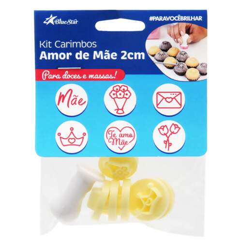 Descrição Kit Carimbo Amor de Mãe para Confeitaria Amarelo 07 Peças FL