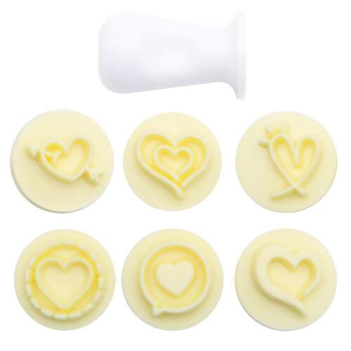 Descrição Kit Carimbo Corações para Confeitaria Amarelo 07 Peças